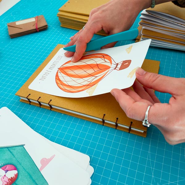 I follow the entire stationery-making process, which I print, cut, bind and package in the colorful LisaLab.