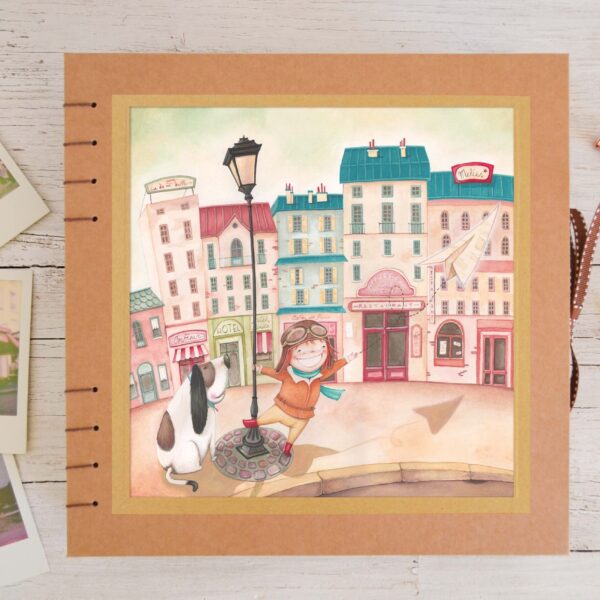 Copertina rigida kraft con RILEGATURA COPTA laccio di chiusura in tessuto e pagine interne colore a scelta. Realizzato in carta FSC®. L’album è pronto per essere riempito, le pagine sono libere e puoi articolare le foto come più ti piace. Libera la fantasia e arricchisci il tuo album con scritte, disegni e decorazioni!